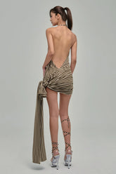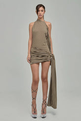 Draped minidress in olive and beige stripes