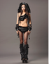 BLACK ASYMMETRICAL BRA + MINI SKIRT + HAT + GLOVES + LEG COVER SET