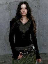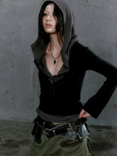 A layered long-sleeve top, an essential staple for any essential yet edgy wardrobe. Constructed from a premium tencel blend, featuring a hooded top and buttons on front.
