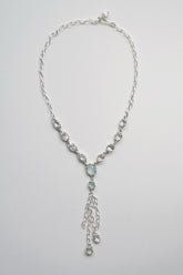 handmade necklace with blue chalcedony and white topaz