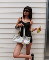 Silver, Pink and Navy are Vegan leather