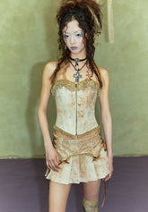 Grungy Lace Patchwork Mini Pleated Skort